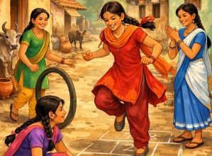 ಅತ್ತ ಕಡೆಗೆ ನಿಂಗ ಕೂಗಿ ಕೇಳಿದ: “ಅಪ್ಪಾ ಅಲ್ಲೇ ತಗೊಂಡು ಬರಲೇನು?” ಎಂದು. ನನಗೆ ಹಾಲು ಬೇಡ ಎಂದೆ. ಅವನು ನೊಂದುಕೊಂಡ; ಬಿಸಿಯುಸಿರೊಂದನ್ನು ಬಿಟ್ಟ. ಆ ಉಸುರಿಗೆ ನನ್ನ ಹೃದಯ ಕರಗಿತೇನೋ! ನನ್ನ ಹೊಟ್ಟೆಯಲ್ಲೂ ಕಲಕುಮಲಕಾಯಿತು. ಕೂಡಲೆ ನಾನಾಗಿಯೇ ಹೇಳಿದೆ- “ಇಲ್ಲ; ಇಲ್ಲೇನೂ ಬೇಡ ಅಂದೆನಿಷ್ಟೇ! ಅಲ್ಲೇ ಹೋಗೋಣ!” ಎ೦ದು ಎದ್ದೆ. ಅವನು ಸ್ವಲ್ಪ ಹಿಂಜರಿದ. ಆದರೂ ಕೆರವನ್ನು ಕಾಲಿಗೆ ಸಿಕ್ಕಿಸಿಕೊಂಡು ನನ್ನ ಮುಂದೆ ನಡೆದ. ಒಂದು ಸಲ ಹಿಂದೆ ಹೊರಳಿ ನೋಡಿದೆ. ಹಳ್ಳದೊಳಗೆ ನೀರು ಜುಳುಜುಳು ಹರಿಯುತ್ತಿದ್ದಿತು. ಮೆಲುಗಾಳಿ ಸುಯ್ಯೆಂದು ಗಿಡಗಳ ಸಂದಿಯೊಳಗಿ೦ದ ಸುಳಿಯಿತು. ಸೂರ್ಯ ಸಾವಕಾಶ ಮೇಲಕ್ಕೇರುತ್ತಲಿದ್ದ, ಬಿಸಿಲಿಗೆ ಬೆದರಿ ಗಿಡಗಳು ತಮ್ಮ ನೆರಳನ್ನು ನೆರೆಯಲ್ಲಿ ಕರೆದು ಕೊಳ್ಳುತ್ತಲಿವೆಯೋ ಎನ್ನುವಂತೆ, ನೆರಳುಗಳು ಗಿಡಗಳನ್ನು ಸಮೀಪಿಸುತ್ತಲಿವೆ. ಹುಲ್ಲುಗಾವಲದೊಳಗಿನ ಕಾಲುದಾರಿ.