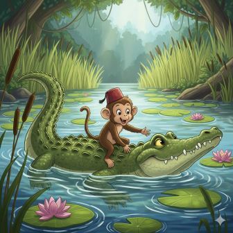 ಕಪಿಗೆ ಆ ಮಾತನ್ನು ಕೇಳಿ ಸಂತೋಷವಾಯಿತು. ಹಾಗಾದರೆ ತಡವೇಕೆ? ನಡೆ ಹೋಗೋಣ” ಎಂದು ಹಾರಿ ಅದರ ಬೆನ್ನಿನ ಮೇಲೆ ಕುಳಿತೇ ಬಿಟ್ಟಿತು. ಮೊಸಳೆಯು ನೀರಿಗಿಳಿದು ಮುಂದಕ್ಕೆ ನಡೆಯಿತು.