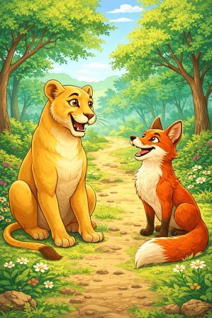 ಒಂದಾನೊಂದು ಕಾಡಿನಲ್ಲಿ ಸಿಂಹ ದಂಪತಿಗಳು ಇದ್ದವು. ಸಿಂಹಿಯು ಒಂದು ಸಲ “ಎರಡು ಮರಿಗಳನ್ನು ಈದಿತು. ಸಿಂಹವು ದಿನವೂ ಹೋಗಿ ಬೇಟೆಯಾಡಿ ಆ ತಾಯಿ ಮಕ್ಕಳಿಗೆ ಮಾಂಸವನ್ನು ತಂದುಕೊಡುತ್ತಿತ್ತು. ಒಂದು ದಿನ ಬೇಟೆಯಿಂದ ಬರುವಾಗ ಒಂದು ನರಿಯ ಎಳೆಯ ಮರಿಯು ಸಿಕ್ಕಲು, ಸಿಂಹವು ಅದನ್ನು ತಂದು ಹೆಂಡತಿಗೆ ಕೊಟ್ಟಿತು. ಸಿಂಹಿಯು ಅದನ್ನು ಕೊಲ್ಲದೆ, ಅದಕ್ಕೂ ಹಾಲು ಕೊಟ್ಟು ಸಾಕಿತು. ಆಮರಿಗಳೊಡನೆ ಅದೂ ಬೆಳೆಯಿತು.